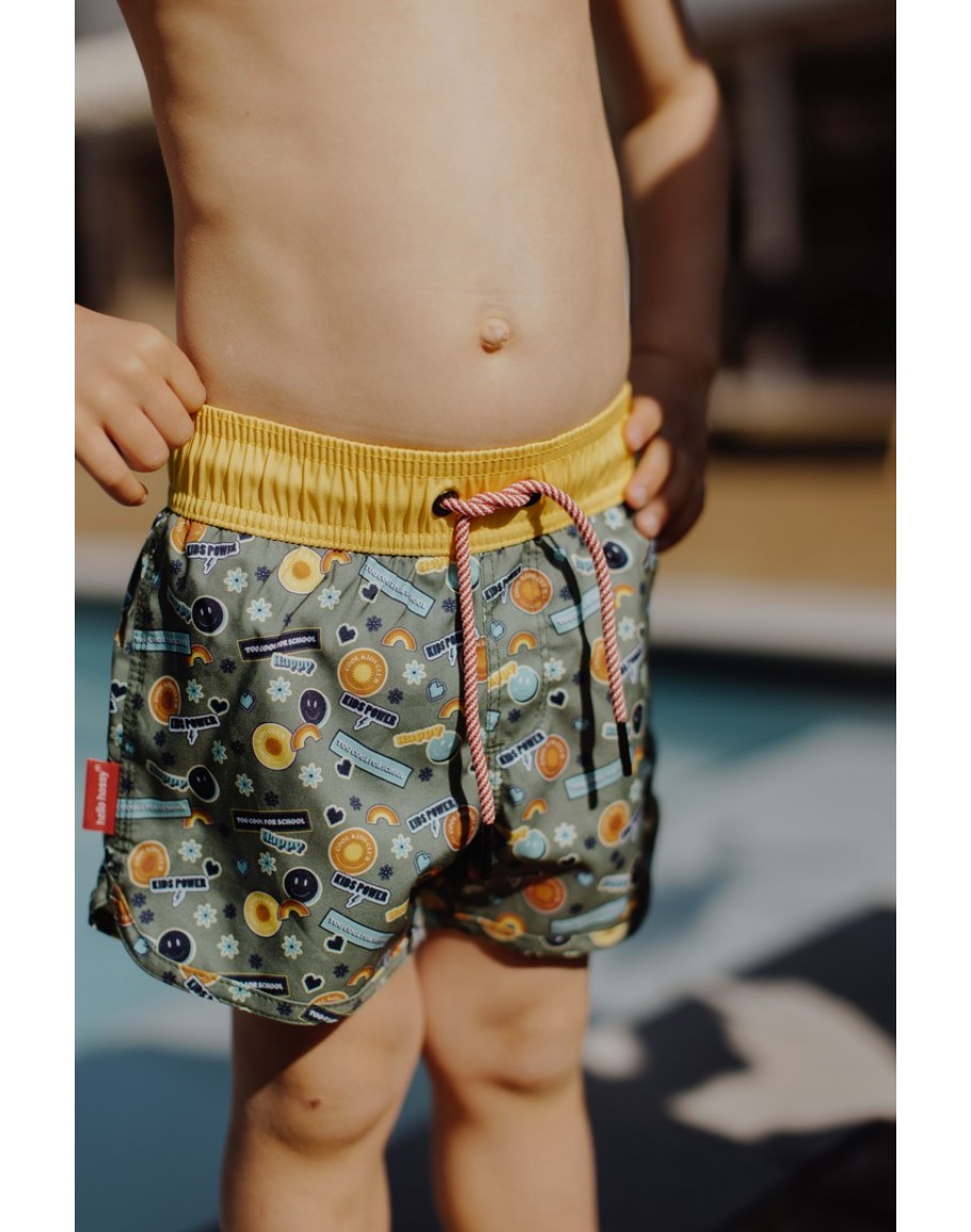 Op zoek naar een zwemshort die lacht? Deze smiley zwembroek van Hello Hossy is wat je zoekt - Elastisch, mooi en verkrijgbaar in 3 verschillende maten vanaf 1 jaar - Grote Schatten - Mageleinstraat 41 uw kinderwinkel te Gent
