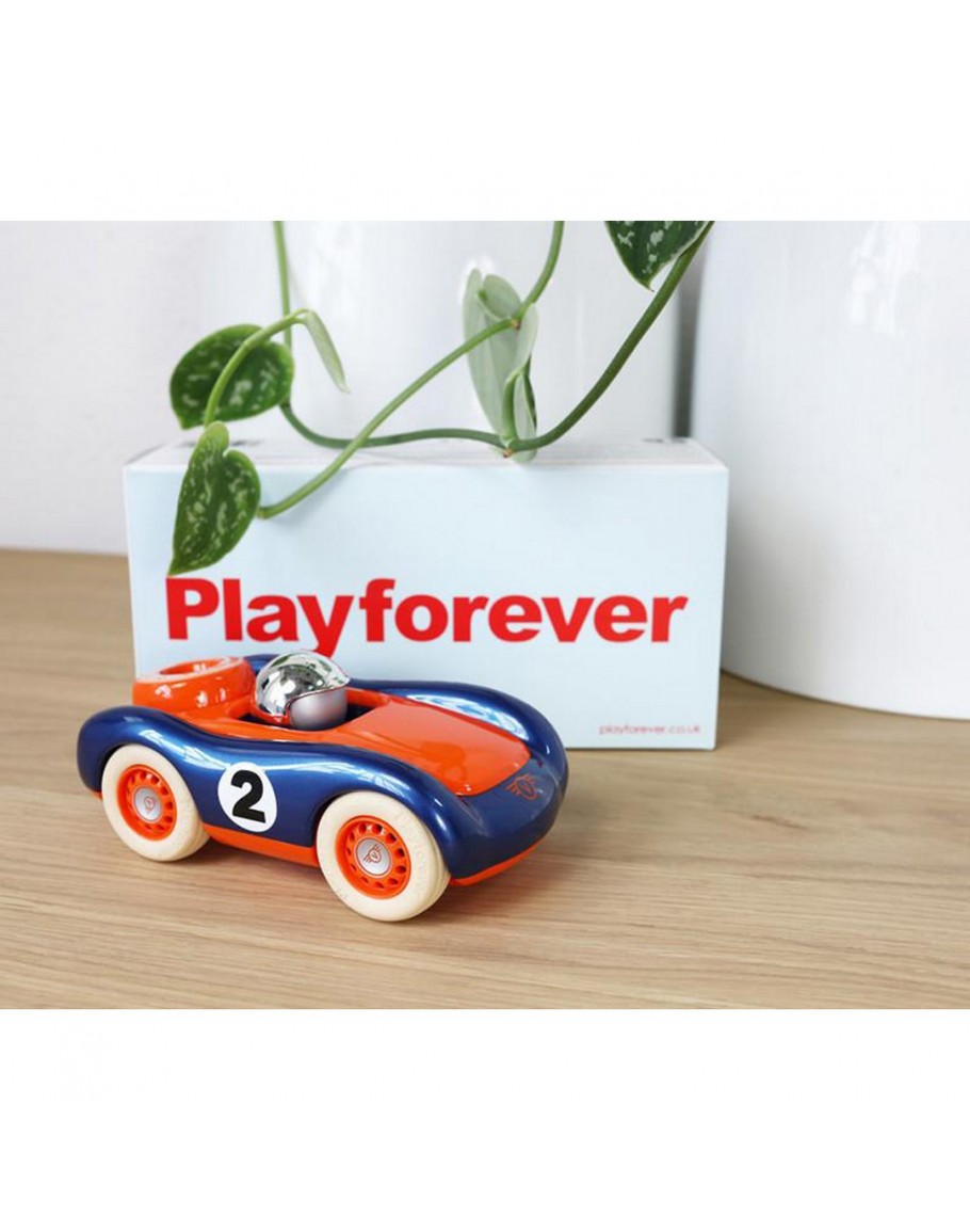 BestellenPlayforever Bruno Racing car Metallic Blue ClassicsPlayforever Bruno car Metallic blue classics - speelgoed auto voor boys en girlsBruno, het allereeste voertuig in het assortiment, een origineel Playforever voertuig. Geboren uit een kinderlijke fasc..